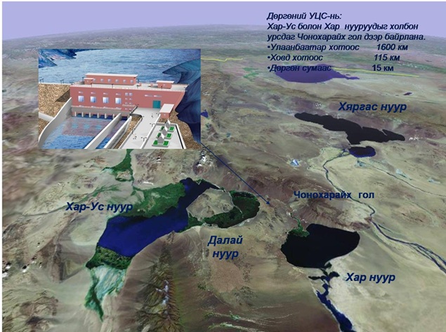 Баруун бүс нутагт Ховд аймгийн Дөргөн сумын нутаг Чонохарайхын голд баригдсан Дөргөний Усан Цахилгаан станц нь Хар-ус нуурын усны нөөц болон байгалийн тогтоцыг ашиглан баригдсан. Дөргөний Усан цахилгаан станцын усны нөөц болон хүчин чадлын судалгааг 1963-1991 оны хоорондох 29 жилийн гидрометр гидрологийн судалгаан дээр үндэслэн гаргасан байдаг. Усан цахилгаан станцын тэжээлийн үндсэн эх үүсвэр болох Ховд гол өөрөө холимог тэжээлтэй гол бөгөөд зуны хур бороо, хаврын шар усны үерээс гадна мөнх цас мөсөн голын ус тэжээлийн үндсэн эх үүсвэр болж өгдөг. Усны хангамшлын хувьд хангамшил хамгийн багатай сарууд нь 3-5 дугаар сарын хооронд байх ба 10 дугаар сарын дундаас эхлэн усны түвшин хамгийн их утгандаа хүрдэг.